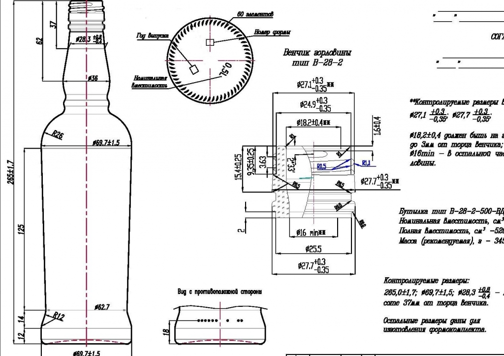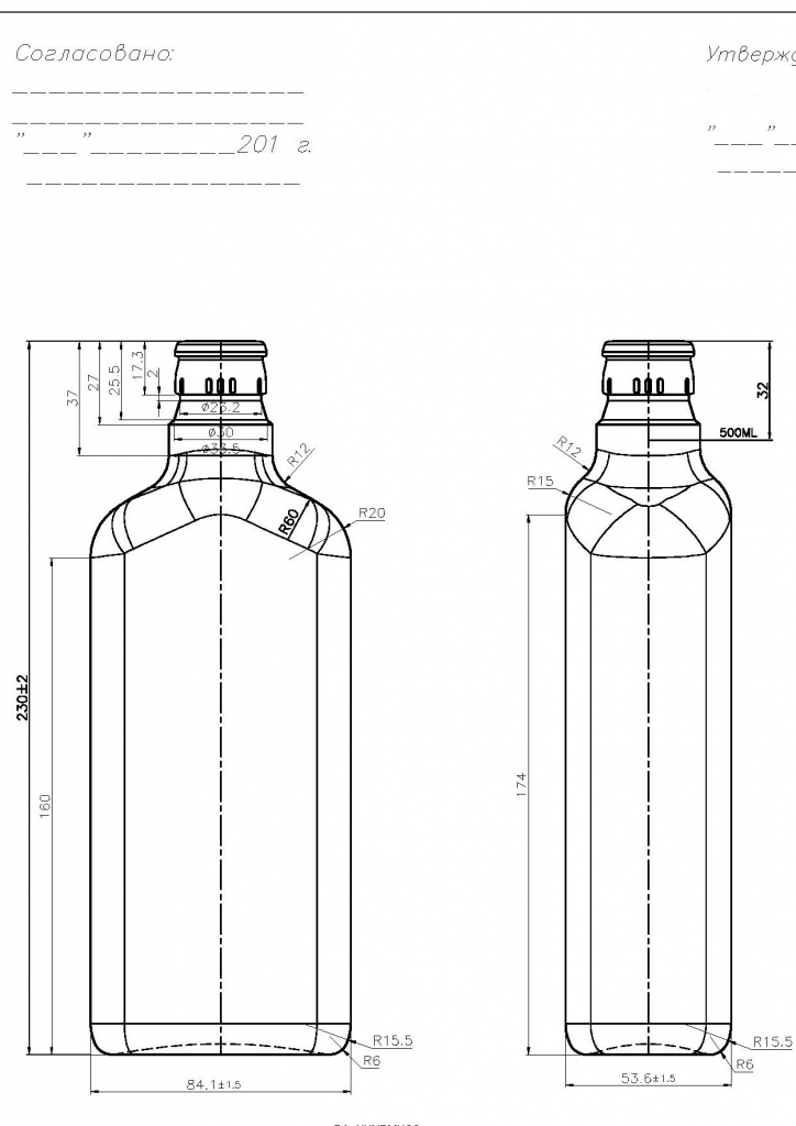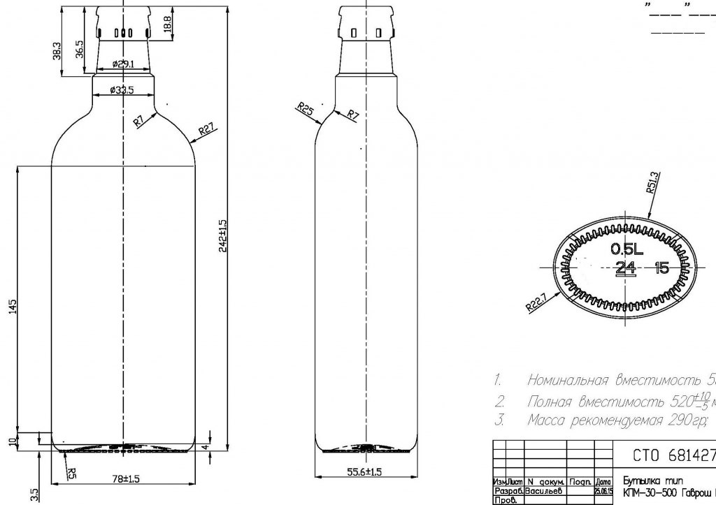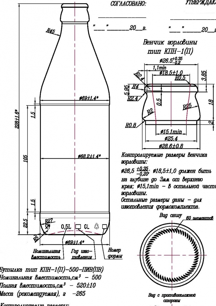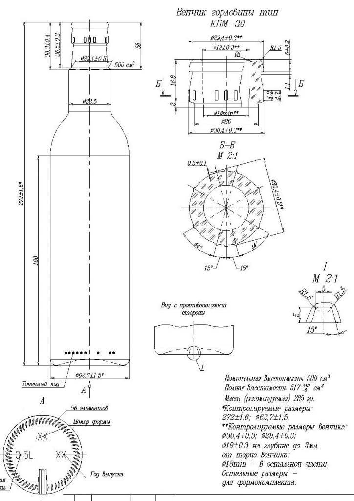 объем: 500 млвенчик: пробкацвет: прозрачныйчертеж: посмотретьП-500 КБ