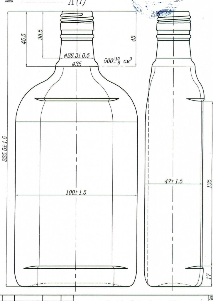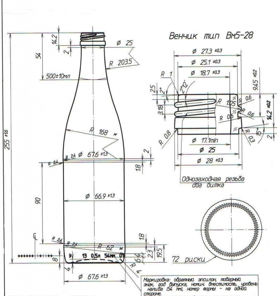 объем: 500 млвенчик: винтовая кронен пробкацвет: коричневый, прозрачный, оливковый, зеленыйчертеж: посмотретьКП 500 Евро